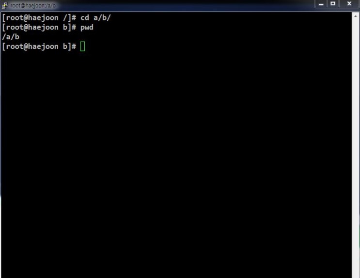 우선 경로를 a의 하위 디렉토리인 b로 이동해보자.