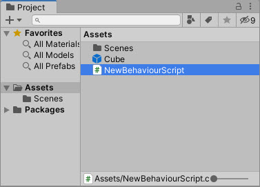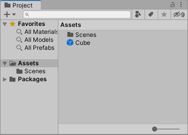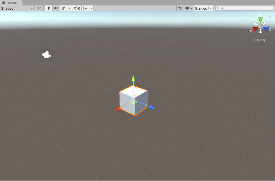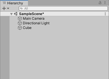 1)예에서 씬에 cube 오브젝트를 생성하였다.