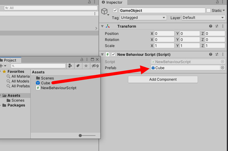 2)cube 오브젝트의 프리팹을 생성하였다.