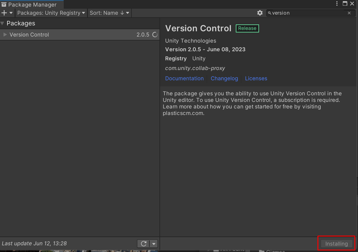 추가적으로 Package Manager에서 Version Control 삭제 후 에디터를 재부팅 한다.