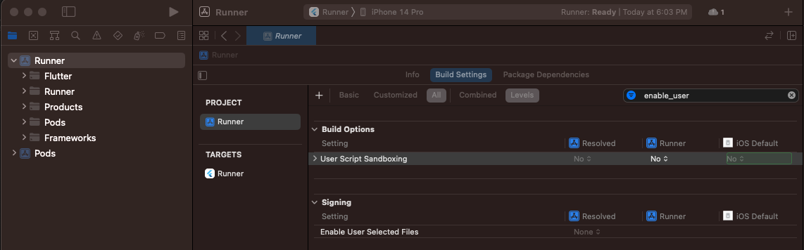 Error (Xcode): Sandbox: rsync(13885) deny(1)