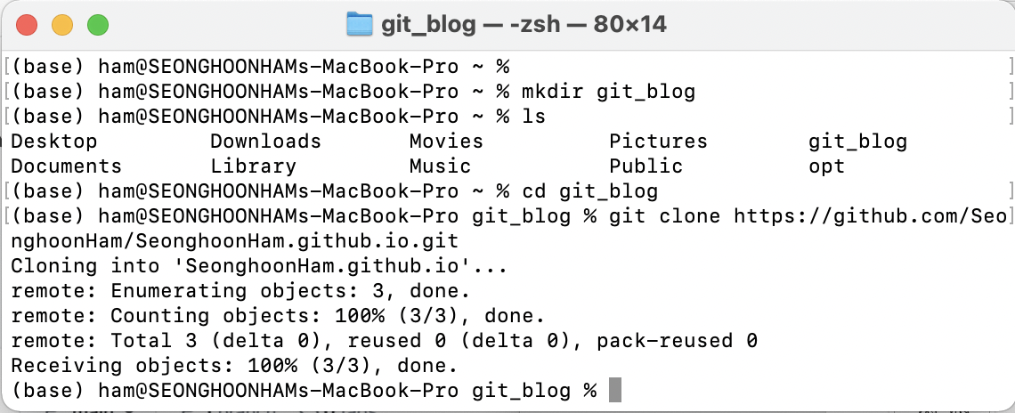 저는 git_blog 라는 폴더를 먼저 만들었습니다.