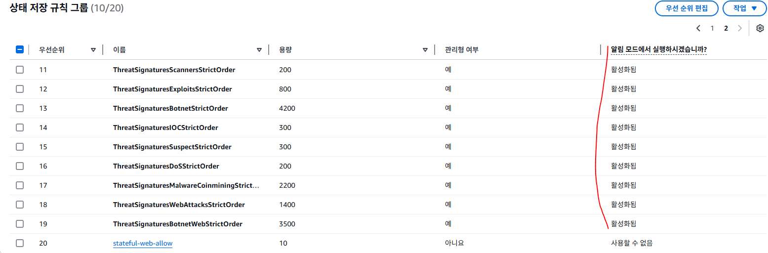 - Network Firewall → 방화벽 정책 선택 → 상태 저장 규칙 그룹