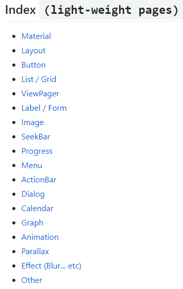 위의 리스트와 같이 각종 UI가 있는 깃허브 페이지입니다.