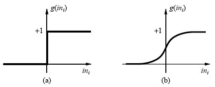퍼셉트론은 활성화 함수로 step function(계단 함수)를 이용한다. 특정 임계값을 넘기면 활성화되는 함수이다. 아래 왼쪽(a)가 계단 함수이다. 0에서 멈추어있다. 어느 기점에서 1로 바뀐다. 학습과 관련해서 많이 들었을 것이다. 지금 열심히 공부할 때는 실력이 오르는지 모르겠지만 어느 순간 점수가 확 오를 것이라고... 우리는 우리도 모르는 사이에 계단 함수를 배우고 있었다.