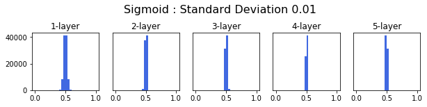 Sigmoid 함수 - Std 0.01, Xavier, He