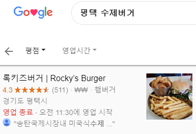 구글에서 평택 수제버거 검색하면 1등으로 나오는 곳이에요