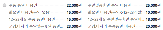 처음에 부모랑 아이랑 가격이 동일해서 고민했는데 그만큼 공연등이 많습니다.